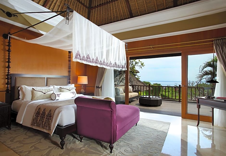 The villa offers 24/7 butler service, buggy transport and preferred access to the Rock Bar. Exclusive 500sqm villa features ocean and sunset views from AYANA's tranquil cliff top. Featuring spacious interior spaces that blend into the luxurious landscape of a private garden, the villa's charming interior décor is complemented by premium solid wood furnishings and luxurious accessories.